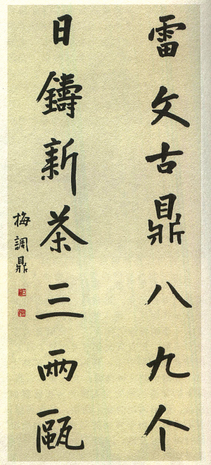 梅调鼎所撰茶联“雷文古鼎八九个,日铸新茶三两瓯 ”