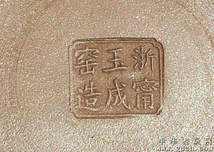 晚清浙江慈溪县城慈城(今宁波市江北区)籍杰出的书法大师梅调鼎(1839年-1906年),字廷宽,号友竹、赧翁等。个性独特,人品高洁,视书法为生命。晚年出于个人爱好,联合一批制壶高手和书画、篆刻名家,在慈城林家院内(今慈城粮机厂)创办浙宁玉成窑,烧制了一批紫砂壶和文房雅玩。这批紫砂器以其独特的艺术价值,成为难得的珍品,近年拍卖屡创新高。2014年年底,两把玉成窑紫砂壶分别拍出340万元、450万元的高价,成为紫砂界的传奇。
