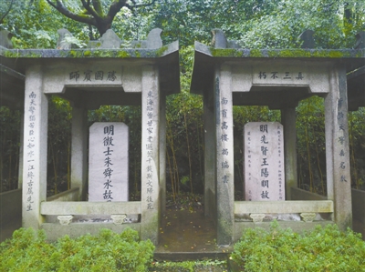 位于余姚龙泉山上的王阳明和朱舜水纪念碑(崔引/摄)